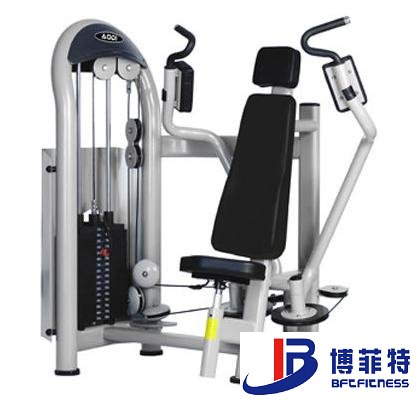 進(jìn)行飛鳥夾胸時所使用的一種機械。主要鍛煉胸大肌和胸部中縫為主的胸部諸肌,初級使用者多會背部緊貼座椅,以便用力;較有經(jīng)驗的用者則會背部離椅,同時鍛煉腹部肌肉。